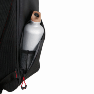 Exterior & Interior: 100% by weight of the outer fabric is made with post-industrial recycled nylon and post-consumer recycled PET plastic. At least 95% by weight of the interior lining and at least 90% by weight of the zipper are made with post-consumer recycled PET plastic. Total use of post-consumer recycled PET plastic is the equivalent of 15 plastic water bottles (0,5L – 20g).